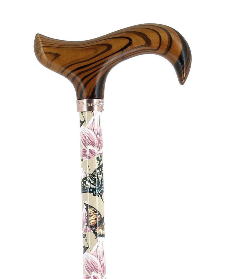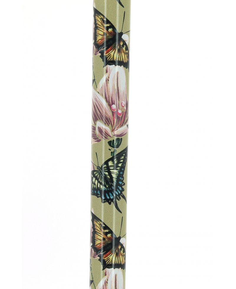 Virág és pillangó mintás női alumínium járóbot, a minta miatt inkább hölgyeknek ajánljuk.
