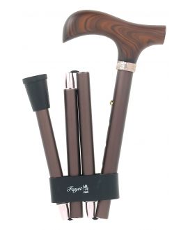 Barna összecsukható női sétabot, melynek magassága könnyen kézzel állítható.