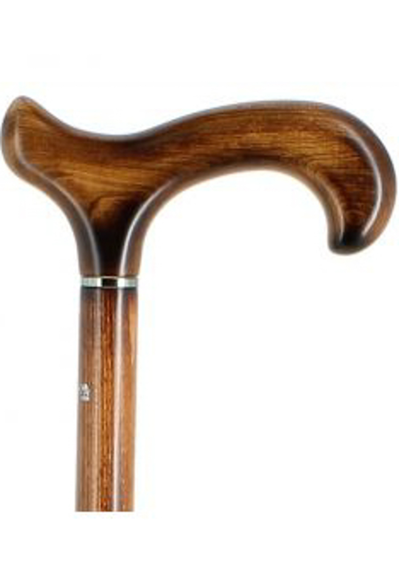 Erős vastag markolatú férfi sétabot nagy teherbírással, nyakán vékony réz gyűrűvel. A bot végén standard botgumi.